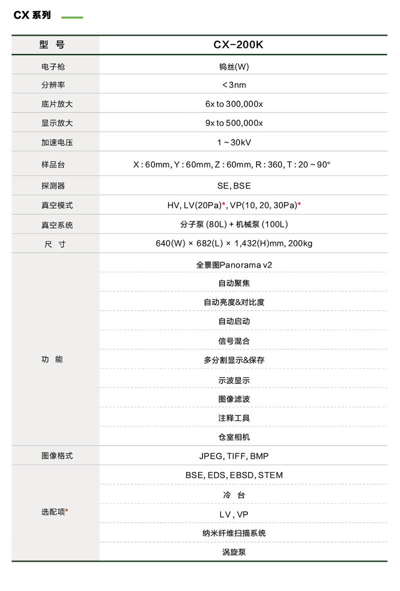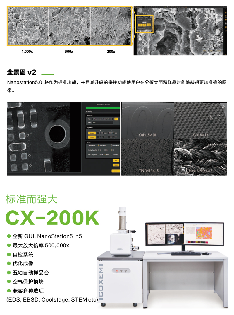 产品概述:CX-200K是一款功能全面、性能强劲的扫描电子显微镜,能够胜任各类研究与质量检测任务。其采用了最新的NanoStation5图形界面操作系统,更友好,操作更简单高效。